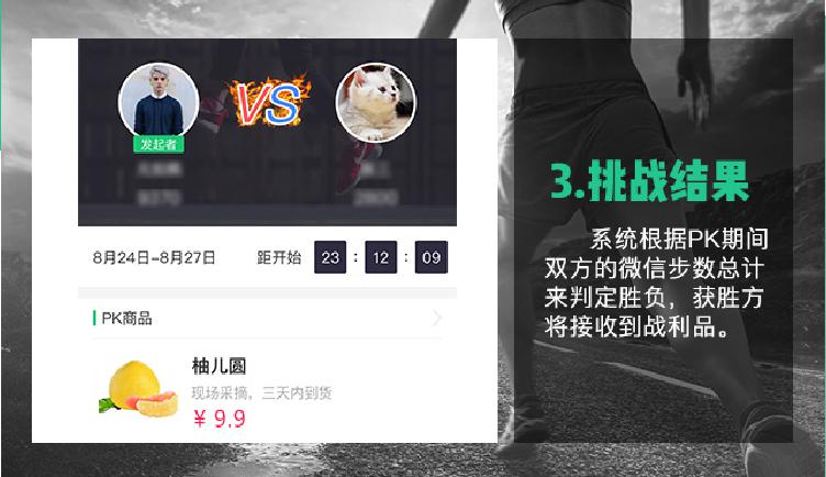 系统根据PK期间双方的微信步数总计来判定胜负,获胜方将接收到战利品。