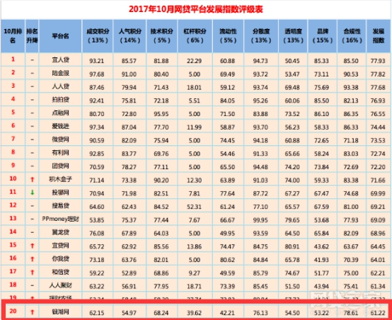 近日,国内知名P2P网贷行业门户网站“网贷之家”发布了《2017年10月网贷平台发展指数评级》,其中,A股上市公司熊猫金控【股票代码600599】全资控股的平台银湖网在成交量、人气度、流动性、透明度等多个维度均表现优异,综合排名晋级至20名。