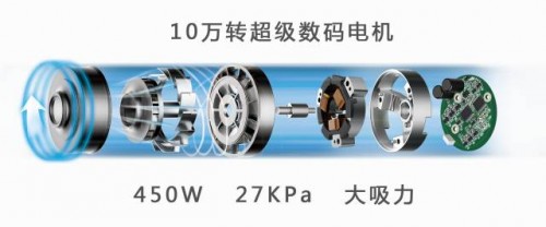 魔洁M95,搭载了莱克,研发成果第3代10万转超级无刷数码电机,,功率450W,吸入功率225W,效率达到50%,电机真空度达到惊人的27Kpa,吸力相当于1500W交流吸尘器电机的吸力,为无线吸尘器带来,的澎湃动力,吸力比当前行业内无刷数码电机性能水平提高了近50%,甚至100%。这一“黑科技”式的科研成果,堪称世界新纪录与行业新标杆,从根本上解决了消费者使用吸尘器的诸多用户痛点。