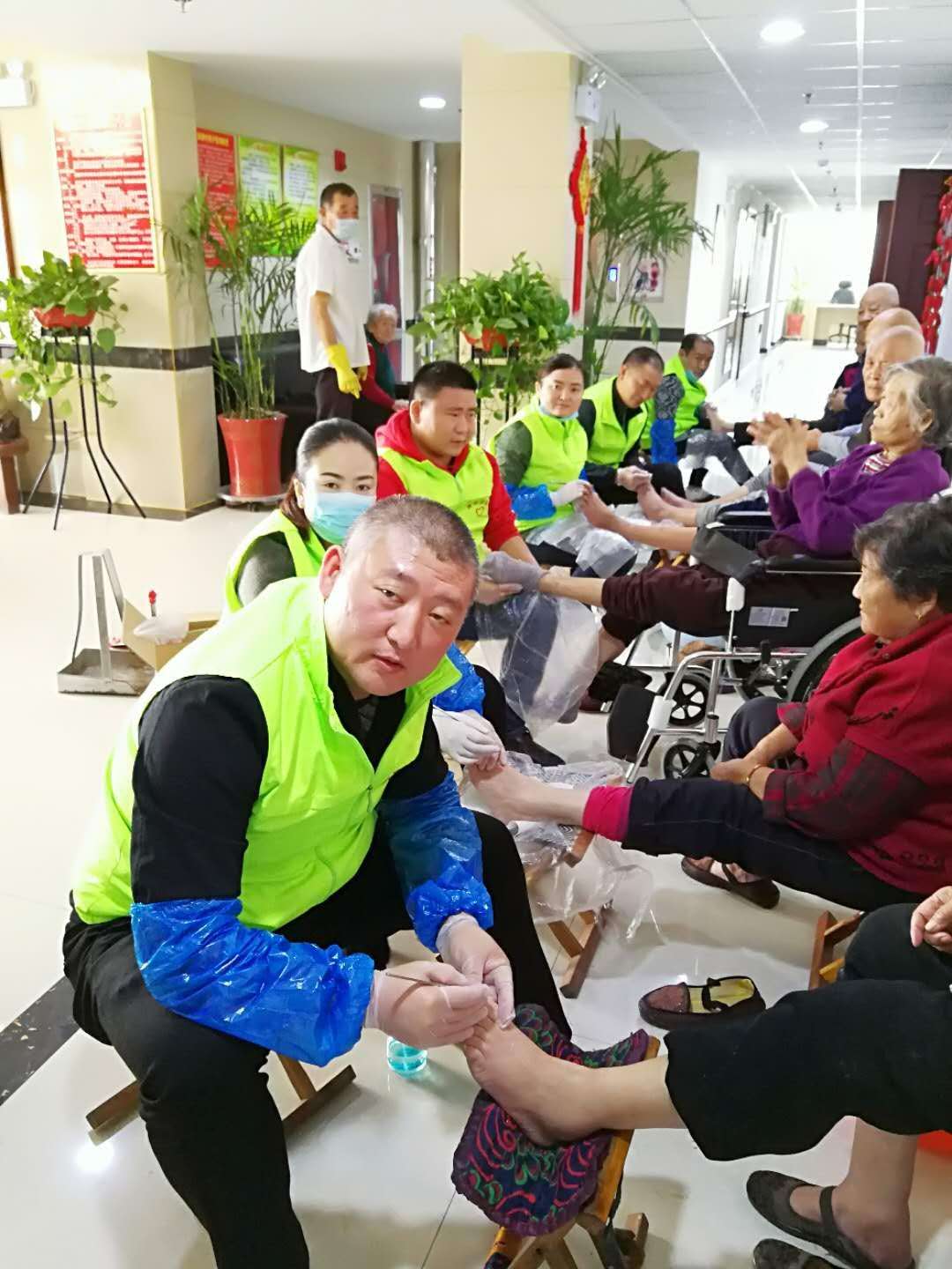 慰问老人,为老人们免费修脚,解除脚疾病痛。