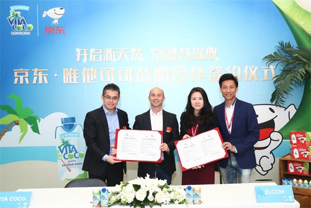 近日,全球最知名的天然椰子水品牌——唯他可可与中国线上线下第一超市——京东超市,在京东大厦签订战略合作协议,唯他可可与京东正式成为战略合作伙伴;唯他可可创始人及全球CEO Michael Kirban与京东集团副总裁、京东商城消费品事业部总裁冯轶出席了本次会议并共同签订了双方的战略合作协议,双方就天然健康消费趋势以及精准“无界零售”未来合作达成了高度共识。