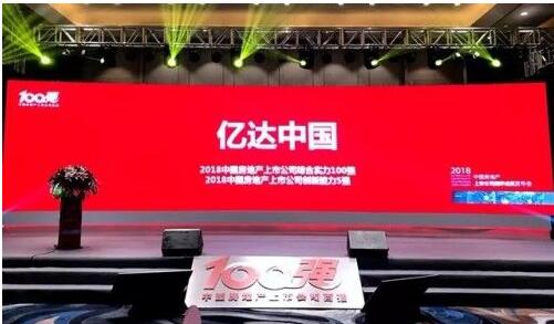 2018年5月25日,中国房地产业协会、上海易居房地产研究院中国房地产测评,在深圳联合发布《2018中国房地产上市公司测评研究报告》,亿达中国获评 “2018中国房地产上市公司综合实力百强”第64名、“2018中国房地产上市公司创新能力五强”第2名。