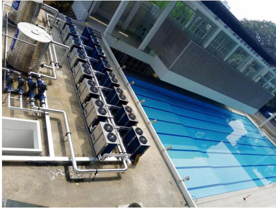 目前,雅加达游泳馆内的电锅炉设备,已经被30台纽恩泰泳池式空气能热泵替代。空气能热泵是一种通过把空气中的低品位能量吸收,变成高品位热量转移到水箱中,将水箱冷水加热,,制造出大量热水的设备。因为使用囤水式加热,再加上空气能热泵内置微电脑控制程序,热泵机组可以根据水箱里水温、水量,自动开机、关机、保温,保证水箱内温度恒定不变,因此使用空气能热泵,可以给游泳池提供24小时恒温热水。