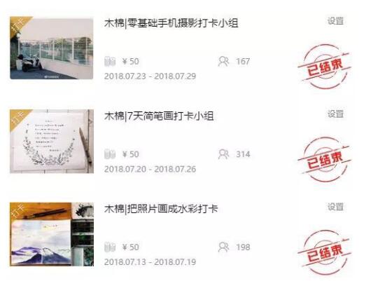 木棉使用知识圈主要是辅助课程交作业,课程主要是在绘画和书法这两块的内容,课程通过直播或者录播的形式去教学生,并且让学生缴纳一定的奖学金,通过知识圈坚持每天打卡交作业,打卡完成之后将全额返还奖学金,以监督学员的学习成果。