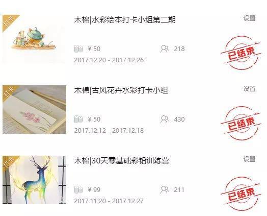 知识圈打卡+绘画的新颖教学方式,可以鼓励学员坚持学习,活跃课程群里的学习气氛。在知识圈的帮助下,木棉的复购率惊人,许多学员一次又一次的报名了木棉的课程。