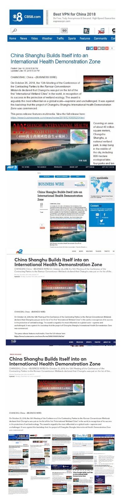随后,AFP法新社、雅虎官网、美国NBC等全球约200余家知名媒体纷纷转载该文,并进一步将分析视角对准健康中国2030战略、城市可持续发展模式、长三角一体化进程等诸多热点议题,称常熟将对标中国乃至全球,标准,逐步成为,生态城市样板与养生休闲目的地,同时将构建以尚湖为,的国际养生示范区,后者“有望成为下一个法国依云镇”。