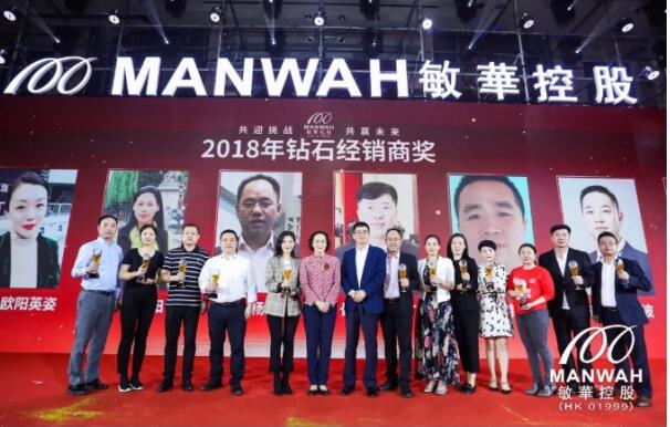 现场颁发了2018敏华控股年度商场战略合作伙伴、敏华控股2018年年度异业联盟战略合作伙伴奖、2018敏华控股年度优秀经销商和年度优秀店长的颁奖。