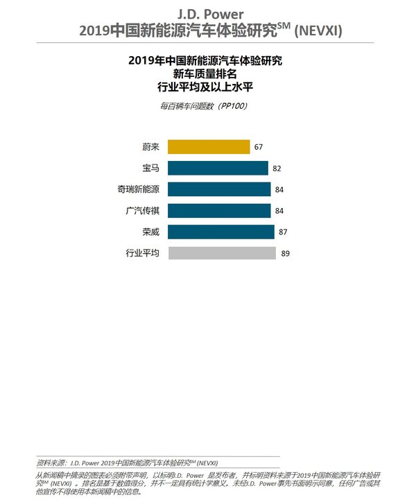 J.D. Power 2019中国新能源汽车体验研究新车质量品牌排名
