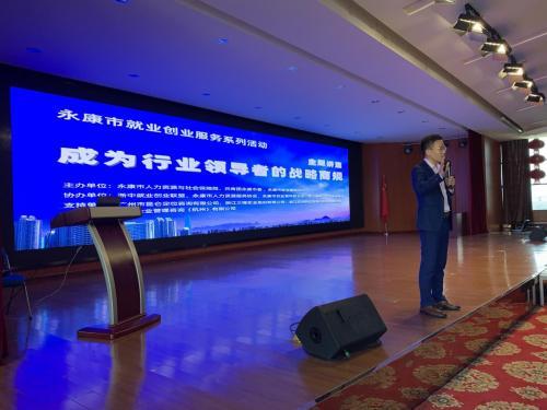7月23日下午,永康市就业创业服务系列活动之《成为行业,的战略商规》主题讲座如期举行,昆仑战略定位培训资深讲师周海斌应邀出席并就“企业如何应对市场竞争”、“不同阶段的企业战略如何规划”以及“如何让企业成为行业,”等内容进行演讲分享,吸引了众多创业者、就业者参与。