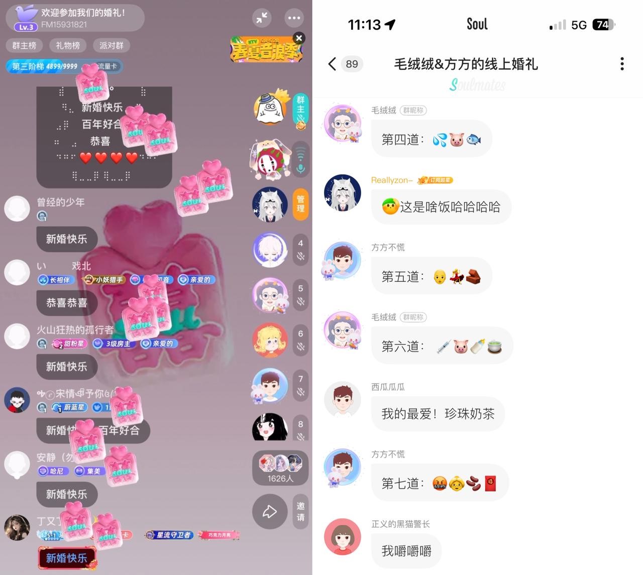 毛绒绒和小方在Soul App的线上婚礼