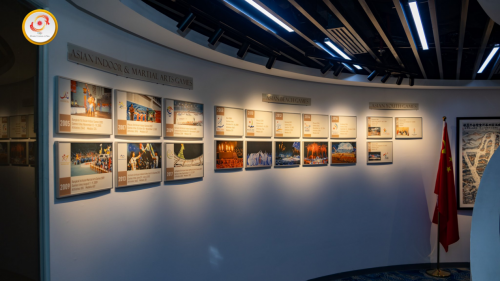 亚奥理事会科威特总部展览馆一角,以瓷艺画展示亚运赛事发展历程