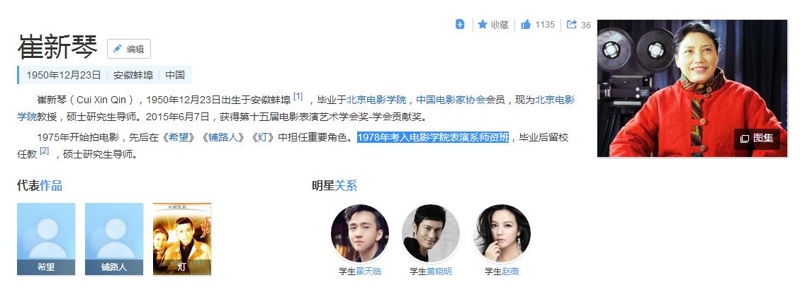 这位老太太就是崔新琴老师。崔新琴为什么这么厉害呢?可以说半个娱乐圈都是崔新琴老师教出来了,最让人瞩目的应该就是她和96明星班的故事,当年崔新琴是96年表演班的班主任,而她们班的学生组成了如今绝对是娱乐圈不可忽视的明星班。赵薇、陈坤、黄晓明、郭晓冬、俞飞鸿、颜丹晨、何琳、张恒、孔维等明星演员都是她一手培养出来的学生,甚至杨幂、黄渤也是老师的学生。作为老师,她担任硕士研究生导师、教授和副院长,更是培养出来了很多知名影星,称之为明星教母也不过分。