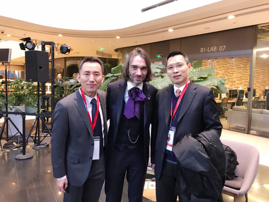 从左至右:法中基金会创业与投资委员会主席、一村2048资本董事总经理郭春龙,法国数学家维拉尼,华西股份兼一村资本董事长汤维清