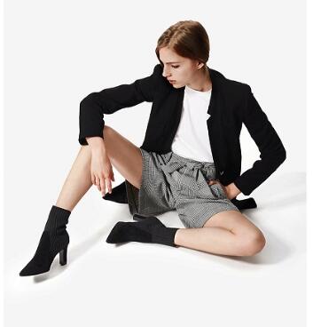 相比动辄8cm的高跟袜靴,这款5cm中跟袜靴更实穿百搭,