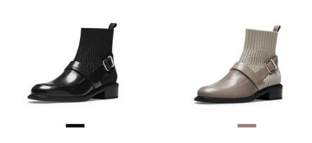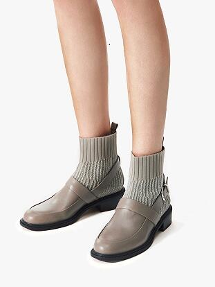 这个系列亮点在针织与绒面和皮质的结合,是袜靴的进一步延伸设计,