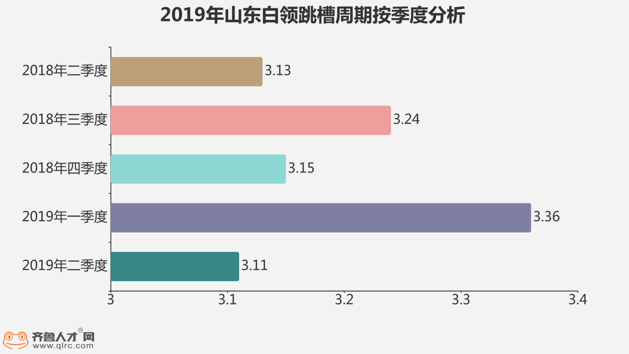2019年山东白领跳槽周期按季度分析,二季度同比稳定