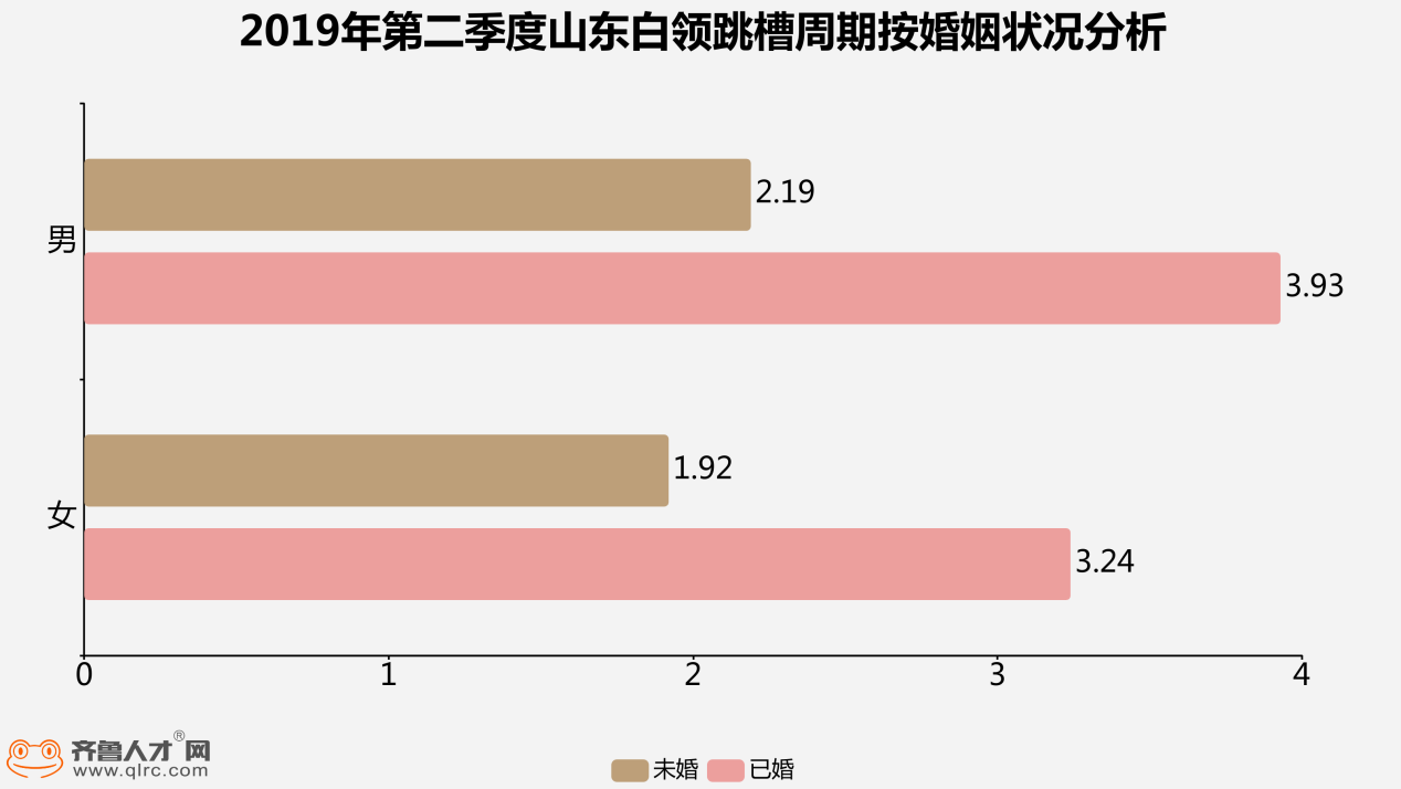 2019第二季度山东白领跳槽周期按婚姻状况分析,未婚群体更爱跳槽