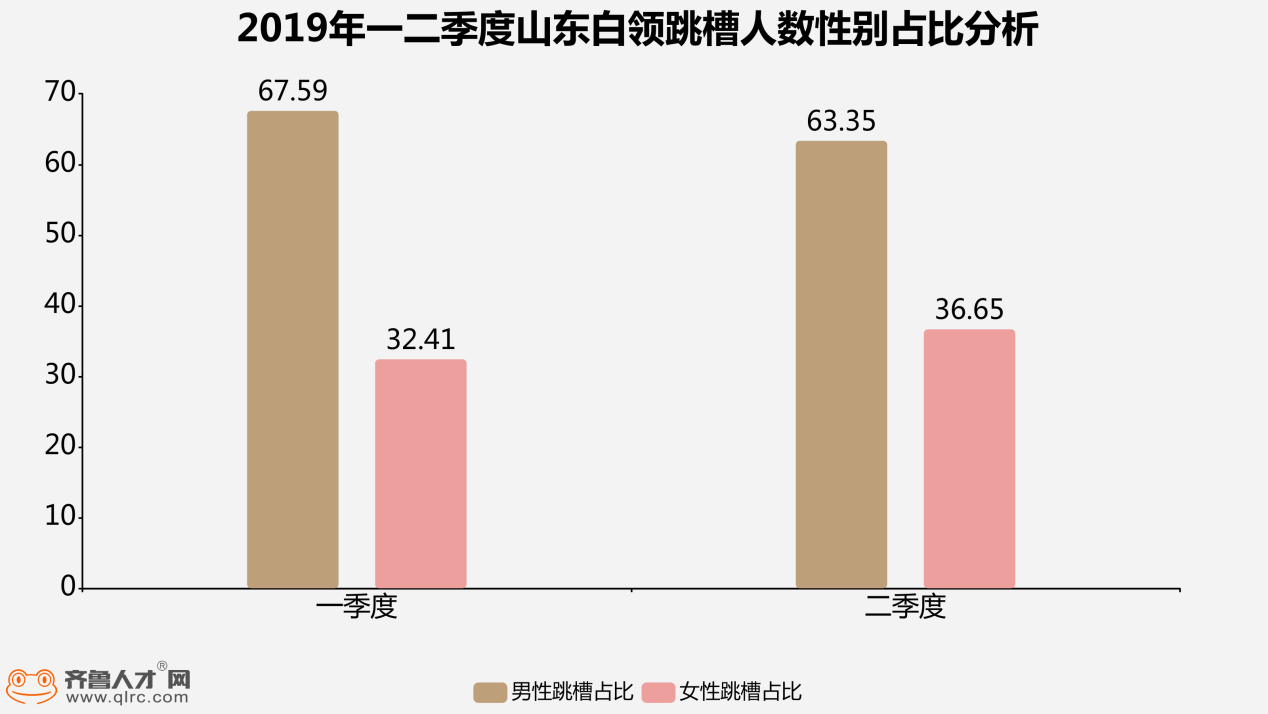 2019年一二季度山东白领跳槽人数性别占比分析,男性跳槽者居多