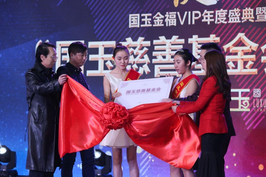 国玉金福也再次慷慨解囊,将三块市场价值超过20万元的珠宝玉石进行现场拍卖,将当晚拍卖所得全数捐给中国社会福利基金会百善计划和保定军校基金户聆天使项目。并决定成立国玉慈善基金会,在未来与中国社会福利基金会建立长期合作,发起“1+1”计划,一帮一,定向捐助。以后消费者在国玉金福每买到一件商品,国玉金福将以其的名义捐出所购商品的1%用于公益支出。将国玉的大爱和正能量传递到更多善心人士手中。董事长戴有明表示,作为一个有责任有担当的企业,深度的参与到公益行动中去,而不是停留在表面作秀,是我们做公益的初心和承诺!