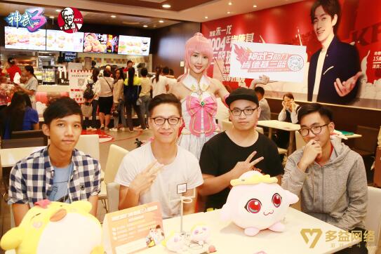 篮球队员在赛场上拼搏流汗,而小昕则通过自己的方式在场外为他们加油点赞。为了让队员们更直接地感受到《神武3》满满的祝福,小昕在主题店内邀请了消费者们一起录制“我为肯德基回归赛加油”的祝福语,暖心接力,汇聚众人力量共同为篮球赛助威。