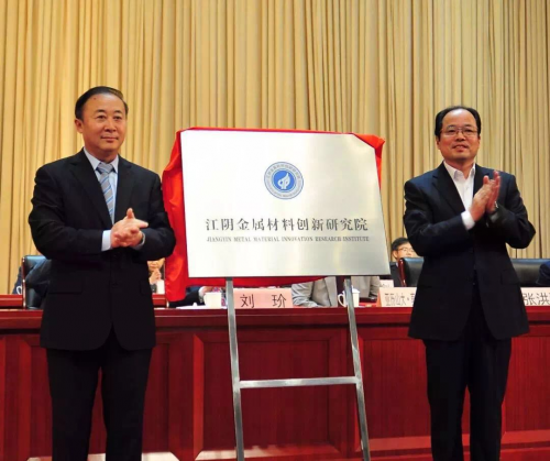 研究院落户江阴高新区,在10月22日下午召开的江阴科技创新大会上,东北大学校长赵继和江阴高新区管委会副主任陈兴华共同为江阴金属材料创新研究院揭牌。
