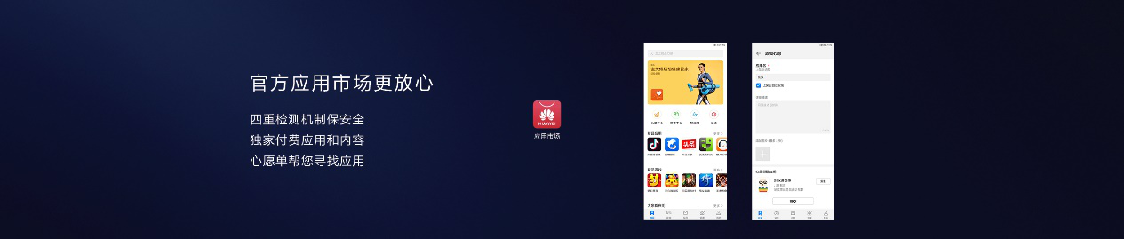 一直以来,华为终端云服务都致力于为用户打造高品质的数字生活。华为应用市场9.0版本作为Mate 20系列的一大亮点,,推出的“,实名认证”、“四重检测”、“定期复检”等贯穿应用全生命周期的安全措施,将为华为用户每日亿万次下载护航,其,付费应用和内容也会给用户带来高品质数字体验。华为应用市场9.0版本中,还增添了“心愿单”,对于找不到的应用,用户可以一键加入“心愿单”,由华为应用市场会为大家寻找。