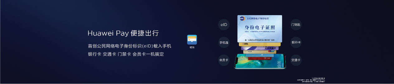 目前, Huawei Pay联合公安部第三研究所首创公民网络电子身份标识(eID)载入手机,消费者可以通过一部Mate 20系列手机完成线上和线下身份认证,如在深圳、潍坊等地部分酒店办理入住,同时支持航旅纵横APP的线上身份认证,无证出行安全新选择。同时,Huawei Pay支持绑定国内 82 家银行的借记卡和信用卡进行刷手机消费。支持11张公共交通卡绑定,覆盖160多个城市公交地铁刷卡;并创新推出了手机盾、碰一碰、门钥匙和会员卡等功能,覆盖移动支付、交通、出行等应用场景。