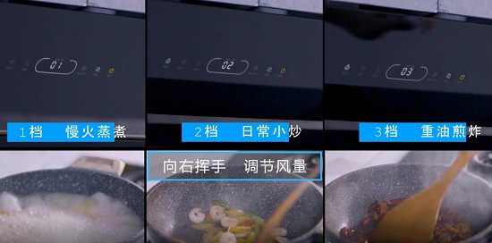 手忙脚乱很浮夸?困扰的可不止是厨房萌新,许多资深煮妇也表示无可奈何。日常烹饪中的煎炒炸炖就对油烟控制有不同的需求,烹饪时还需要时不时腾出手去调整油烟机的风量;脏手不说,湿手触控操作面板还会产生互动面板控制失灵及清洁问题。
