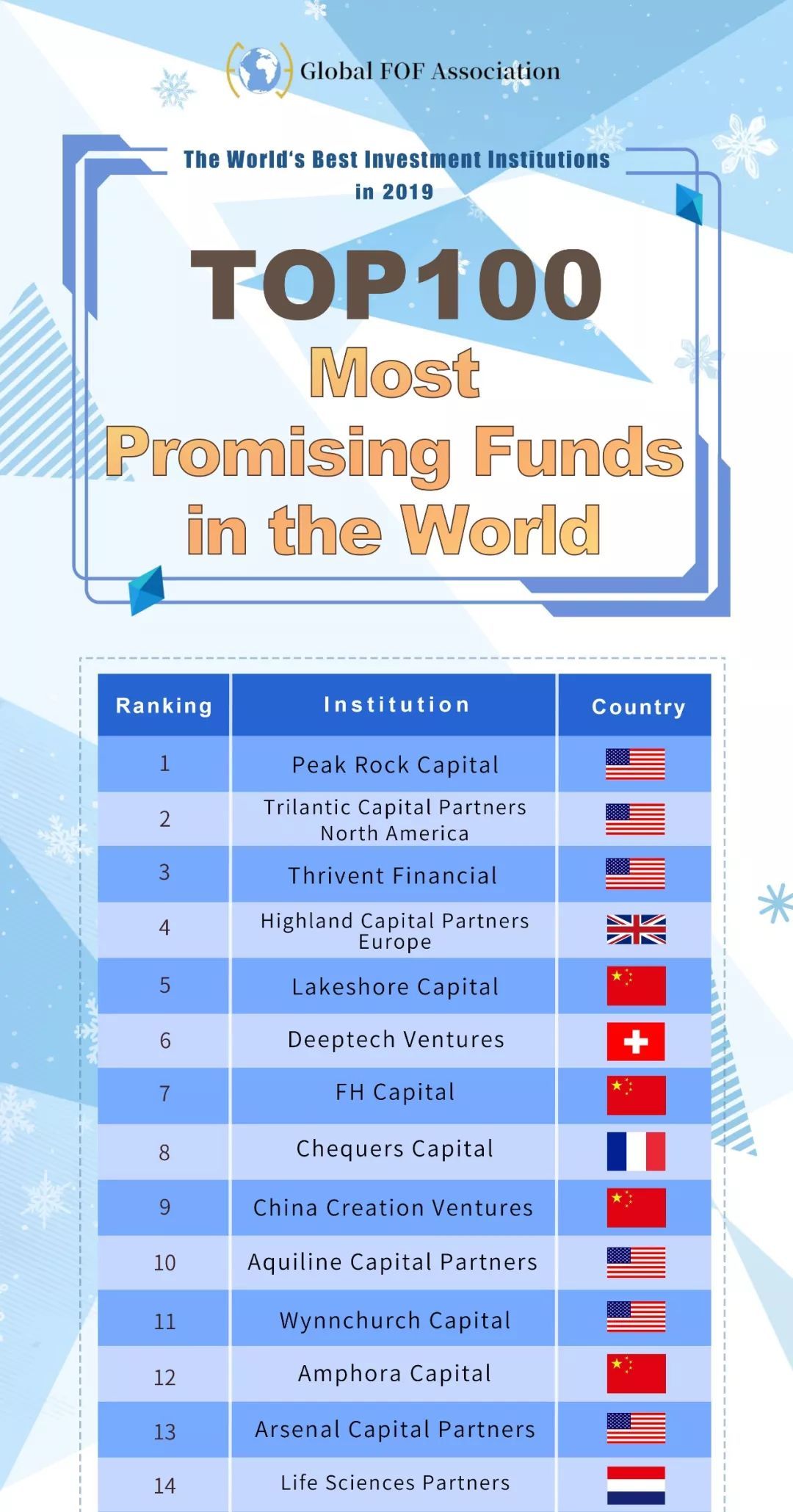 2019年度全球,潜力佳投资机构Top100榜单如下: