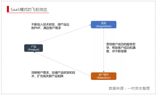 一旦金额续费率遇到瓶颈,SaaS模式的飞轮效应就无法打开,进而无法形成良性循环和增强效应。
