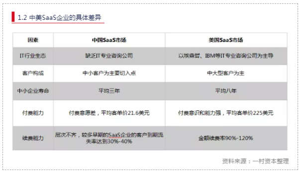 从2010年起,国内出现了大量的创业者和SaaS领域投资者借鉴美国SaaS公司的“,”模型和故事,想要创造中国的Salesforce和Workday,复制消费级互联网“Copy to China”的成功经验,但却鲜有成功。我们已经通过前两篇SaaS系列研究,借助经典模型来探索了决定SaaS估值高低的各项核心因素。在此基础上,我们尝试通过对中美SaaS企业发展的生态环境、客户情况等条件进行对比,进一步分析中美SaaS企业的具体差异。