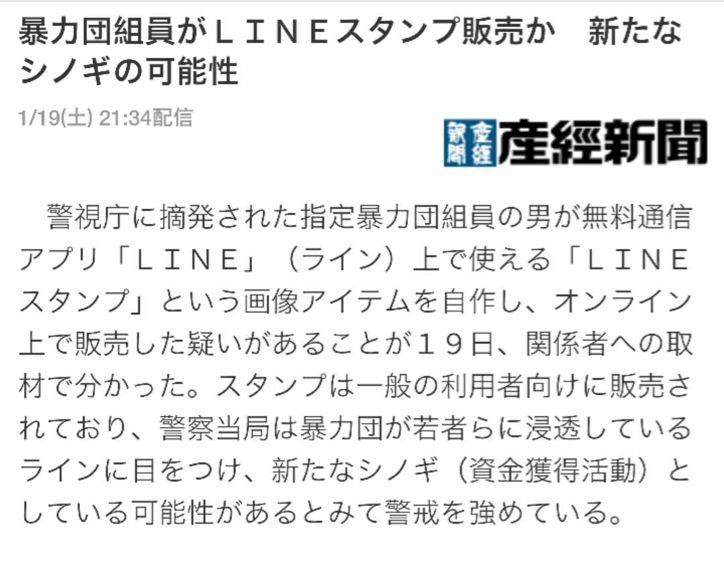 日媒19日报道称,一名日本黑帮成员在社交软件line上贩卖自制表情包,引起警方的注意。警方认为这可能是一种新型“收保护费”的行为,因而加强了警戒。