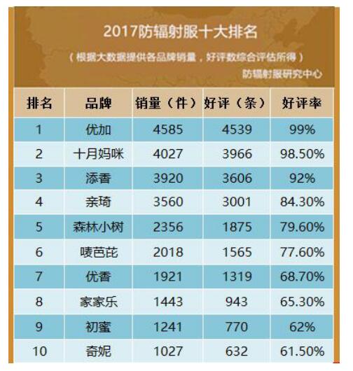 优秀的品牌,自然受人青睐,这样的结果,就是造成可观的销量。因此,销量也能成为判断什么牌子防辐射服好的要点。这一点吗,大家可以参考防辐射服研究,根据大数据提供的各防辐射服品牌销售数据所做的防辐射服十大排名。