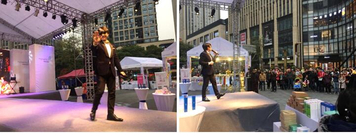 举行中小企业振兴公团和公团和在这区域的代理人(株)大日本草为欢迎文总统访问重庆,同时展示韩国中小企业的优秀产品的活动。这次有韩美毛巾(株),(株)宝贤,(株)爱丽丝马萨,NCTBIO,巴山高丽红参(株),micellglobal,NARA,(株)TDC等展示50多个韩国中小企业。生产调味海苔的(株)宝贤是这次第一次出口成功的企业. 活动现场有免费试吃韩国路边小吃的年糕、歌舞表演、乐队演出、模特秀场、和主持人的产品介绍,促销活动等。影视明星张世玉也亲临现场助兴表演,掌声不断,一阵阵笑声不断,