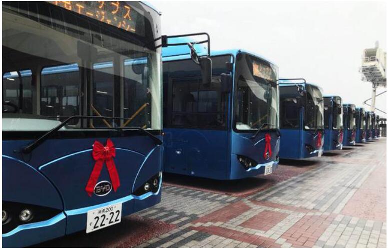 日本冲绳的比亚迪纯电动巴士车队