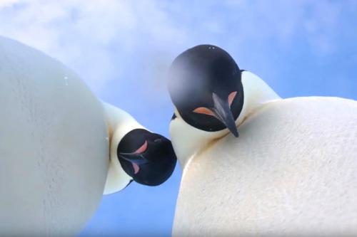 此时,另一只企鹅也走过来入镜,两企鹅轮流“检查”镜头,就似争相抢镜自拍一样,,它们甩甩头,短片结束。