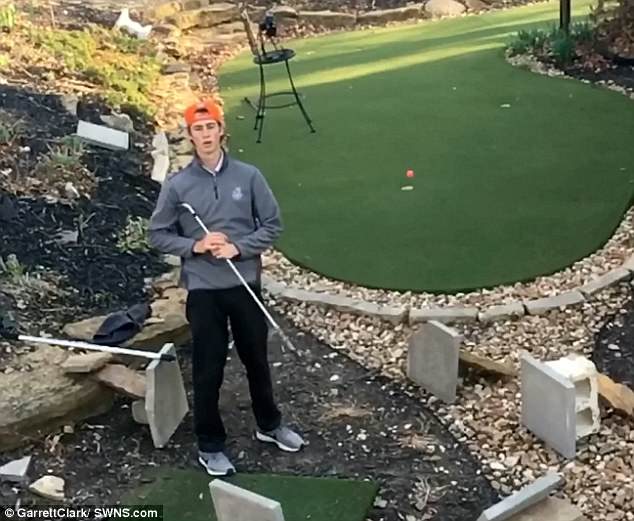 【环球网综合报道】据英国《每日邮报》6月6日报道,近日,来自美国堪萨斯州的18岁少年加勒特•克拉克(Garrett Clark)在国外图片分享软件Instagram上炫了一把高尔夫一杆进洞的特技,让网友赞叹不已!