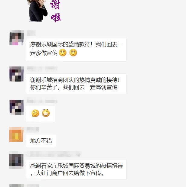 晚宴过后,乐城工作人员陪同商户一同踏上回北京的高铁。回程路上,凭借着雄厚的实力与满满的诚意,石家庄乐城国际贸易城得到了商户们的一致好评,商户们纷纷表示:“一定会回来的!来乐城,一起创建一个崭新的‘石家庄大红门’,与乐城共同发展!”