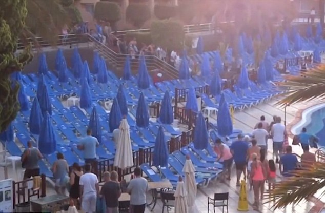 去年住在格兰卡纳里酒店的肯尼迪每天早上7点就能看到下面一大群人排队抢占日光浴浴床,从她拍摄的视频中可以看到,其中一名男子甚至在抢夺大战中不小心伤了脚趾。