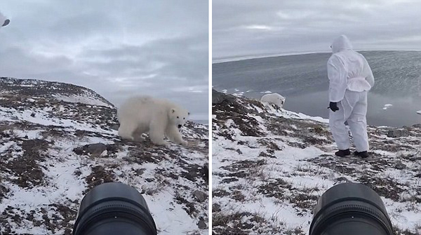 在这则长达3分48秒的视频中,摄影师马克西姆足足吓远这只调皮的北极熊6次。他的摄影工作也是“熊之巡逻”项目的一部分,该项目旨在监测和防止北极熊打架。北极熊据称是最危险的熊类之一,但马克西姆面不改色,不遗余力地捕捉,镜头,尽管这意味着要把一只体型巨大的北极熊赶走。