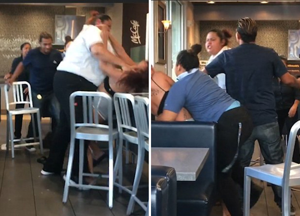 【环球网综合报道】据英国《每日邮报》7月26日报道,近日,一名来自美国加州、名叫玛丽(Marie Dayag)的女性拍到的一段视频记录了某家麦当劳快餐店内一场店员与顾客间的“打斗”画面。起因竟是该员工因顾客想要用水杯接一杯店内的免费苏打水而对其不满,二人言语不和便大打出手。