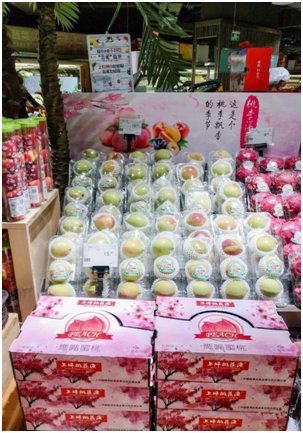 2017年,他打造的“上坪桃花源”品牌鹰嘴桃,入驻天虹、吉之岛、ole、山姆等商超,同时也是,一家通过中国国际互认检测认可,214单项检测全部通过,高品质整车供港。打破鹰嘴蜜桃种植二十多年无法在超市上架的历史,这是鹰嘴蜜桃质的飞跃。