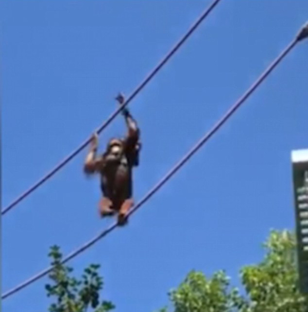 据报道,这条绳索是从大猩猩馆穿越到智库的捷径,园方允许猩猩们按照自己的意愿沿绳索随意往返。史密森动物园称,园内成立了灵长类动物小组,每日会对天气进行评估,确保温度、风力和降水条件适合巴唐和其他动物的安全转移。(实习编译:孙婷钰 审稿:朱盈库)