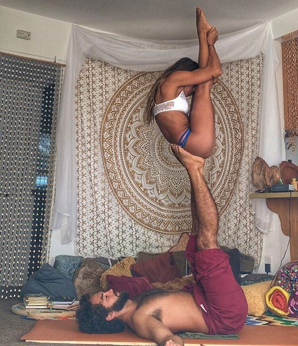 据报道,现年29岁的汉娜(Hannah GypsyOn)和29岁的男友巴勃罗•弗罗斯特(Pablo Frost)于2017年3月份的一次双人瑜伽节上初次相识。之后,这对情侣一直坚持练习各种高难度瑜伽动作,包括一系列高空飞行动作,如旗子式、美人鱼式和蝎子式姿势。更令人叹为观止的是,这对夫妇在海滩上练习出了美丽的彩虹式姿势。