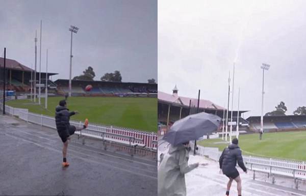 【环球网综合报道】据英国《每日邮报》9月7日报道,近日,澳大利亚阿德莱德澳式足球队队员艾迪•贝茨(Eddie Betts)一脚远射后,一道闪电当空劈下,远远望去仿佛橄榄球被雷击中。9月7日该视频发布后引发不少人围观,不少网友则质疑其真实性。
