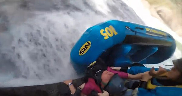 【环球网综合报道】据英国《每日邮报》9月24日报道,近日,美国佐治亚州三人在划皮艇漂流时不幸翻船,其中一名女子落水后被橡皮艇挤在一块岩石上,性命攸关。在此惊险时刻,两名同伴努力将她拉了上来,救了她一命。