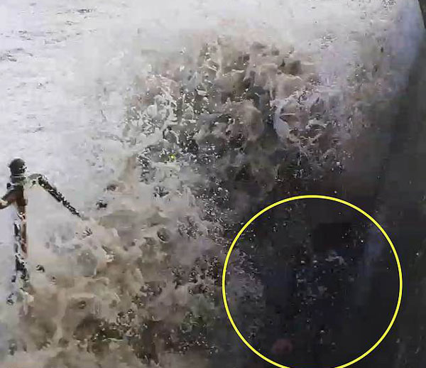 视频显示,顽皮的科里试图跑过浪潮,但他低估了海浪的速度和大小,中途甚至还慢悠悠地走。很快他就意识到自己的错误并疯狂往回跑,向阶梯上冲刺,结果被12英尺(约3.6米)高的海浪逮个正着,浇了个透心凉。可以看出科里显然被吓了一跳,满脸难以置信。视频中还能听到佐伊的狂笑声。