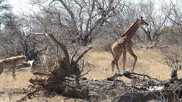 此时,长颈鹿妈妈便飞奔着返回保护自己的孩子,吓退了不怀好意的掠食者。这些鬣狗只好慢慢走开,退回附近的阴凉处。