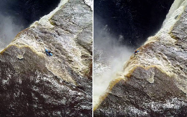视频显示,在激流中,马特恩划着皮划艇行至岸边,准备冒险一试,随后从110英尺(约33米)高的瀑布上俯冲而下。过了一会儿,他消失在水下,幸运的是,从头盔上的镜头可以看到,这位勇猛的年轻人毫发无伤地出现在镜头中,他为自己感到自豪。之后,另一名在瀑布底下的同伴划着皮划艇向马特恩划去,一群皮划艇运动员相互击掌祝贺马特恩挑战成功。