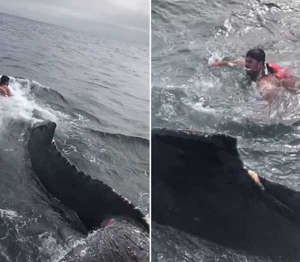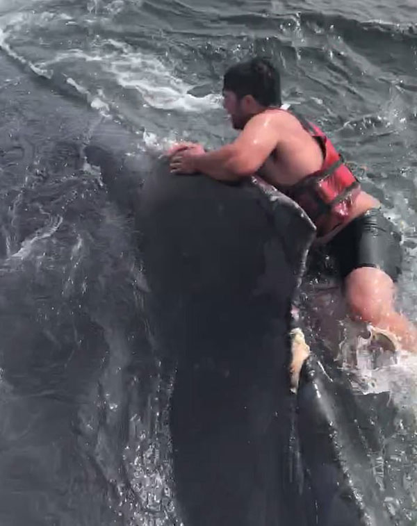 视频的拍摄者尼古拉斯说:“那时我们决定让山姆下水去救它。”视频显示,山姆纵身跃入海水中,艰难地爬上鲸鱼背,小心地保持平衡,在海浪中努力地割着绳子。鲸鱼显然明白人们正试图拯救它,逐渐平静下来。最终山姆成功地割断绳子,鲸鱼随即获得了自由。